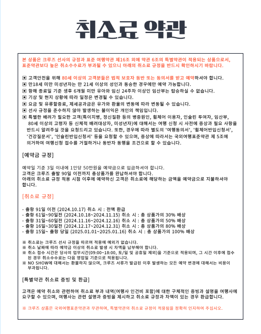 (예약금 입금계좌 : 국민은행 532001-01-329941 (주)크루즈여행닷컴 )