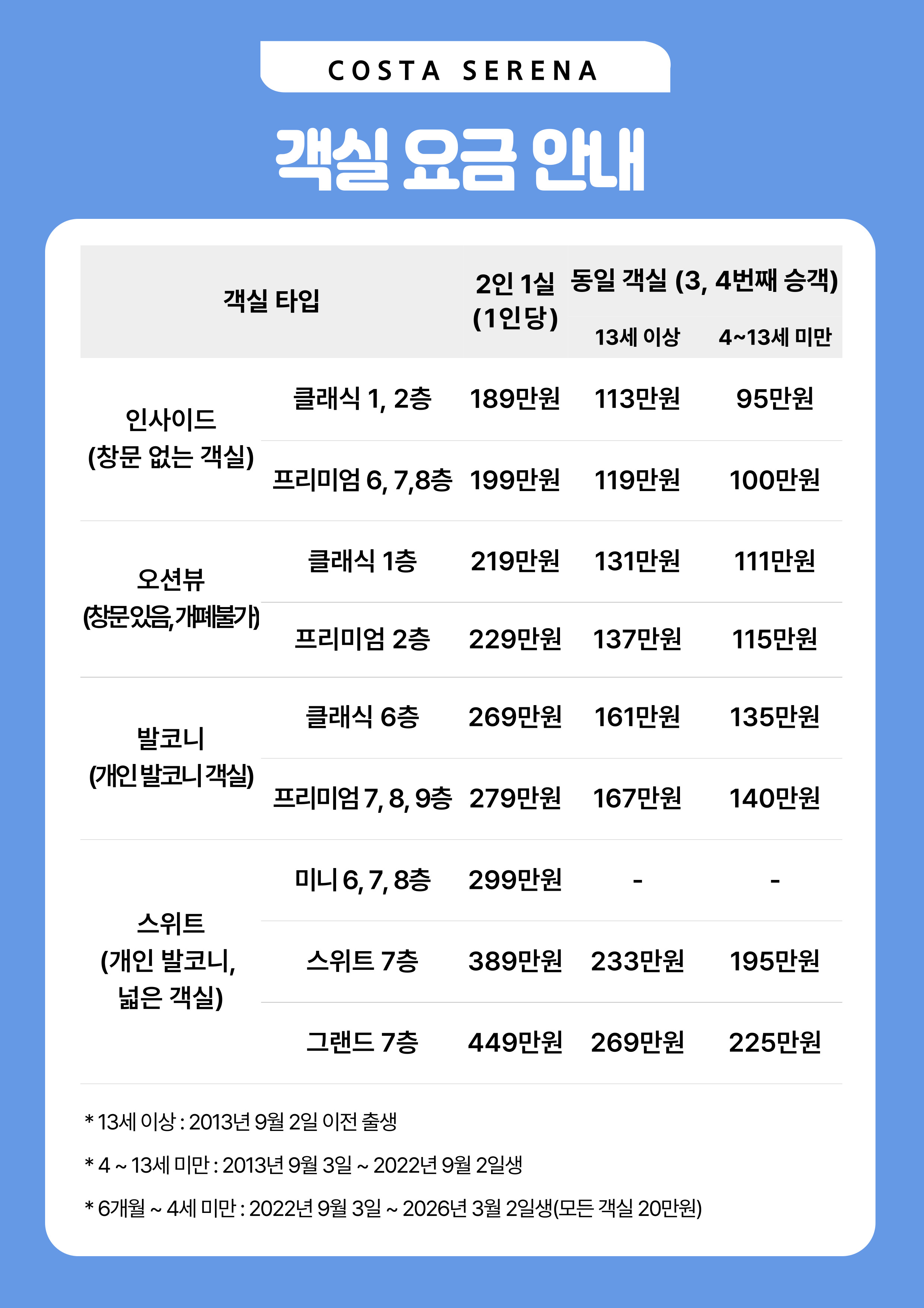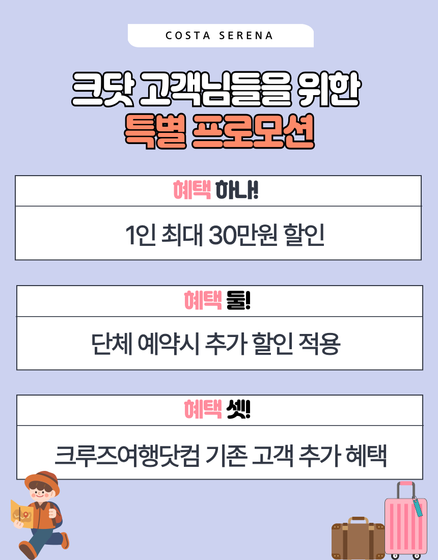 ✔️ 소아, 유아 상품가는 성인 2인과 함께 캐빈을 사용하는 기준입니다.